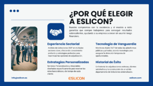 En ESLICON proporcionamos un servicio integral en el proceso de gestión empresarial y de licitaciones, convirtiéndonos en su departamento de contratación pública. Desde la selección hasta la presentación, seguimiento y presentación de recursos, nos encargamos de cada fase, garantizando un acompañamiento completo para alcanzar sus objetivos de manera óptima.